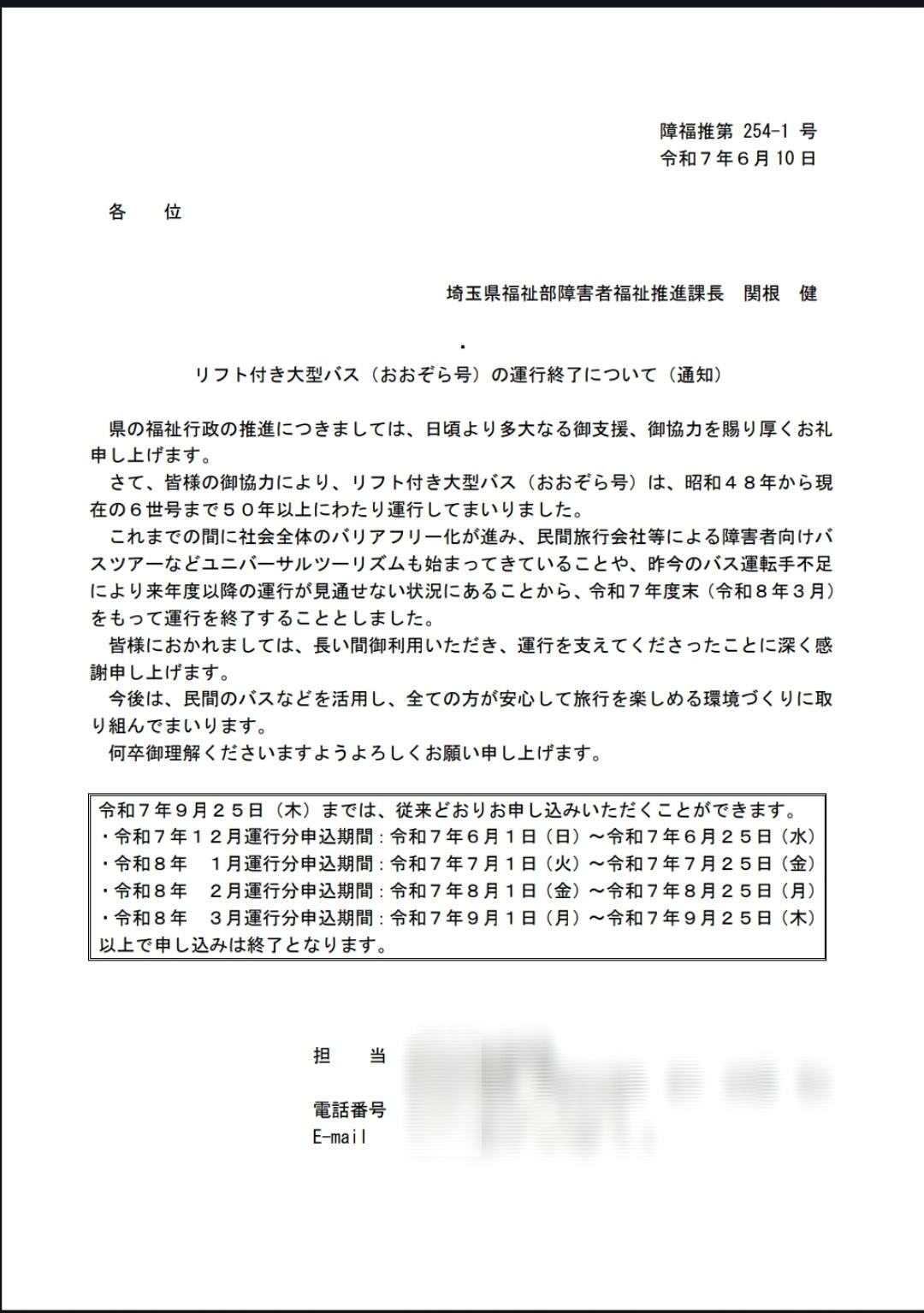 まず、写真①や次のリンクのように、昭和48年から現 在の6世号まで50年以上にわたり運行してきた「リフト付き大型バス(おおぞら号)」の運行が、今年度で終了という方針が打ち出されました。