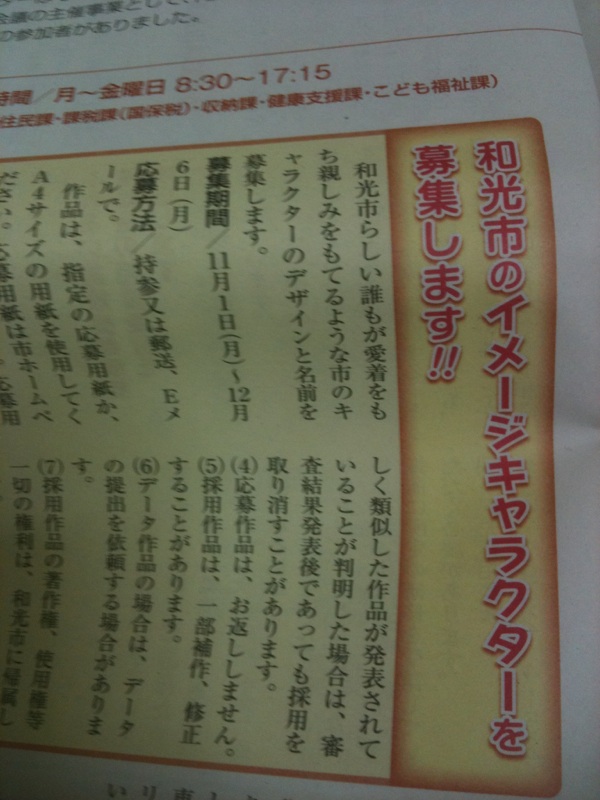 この和光市イメージキャラクター(=ゆるキャラ)募集は