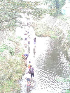 「ザリガニ捕った~」「こっちも魚いたよ~」といった