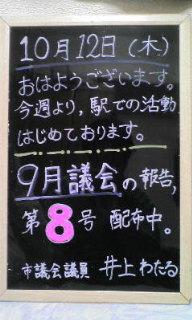 来週も引き続き、駅立ちとチラシ配りをさせていただきます。