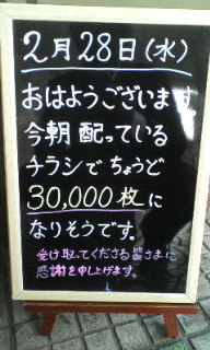 今朝配ったチラシで、これまでの通算配布枚数が