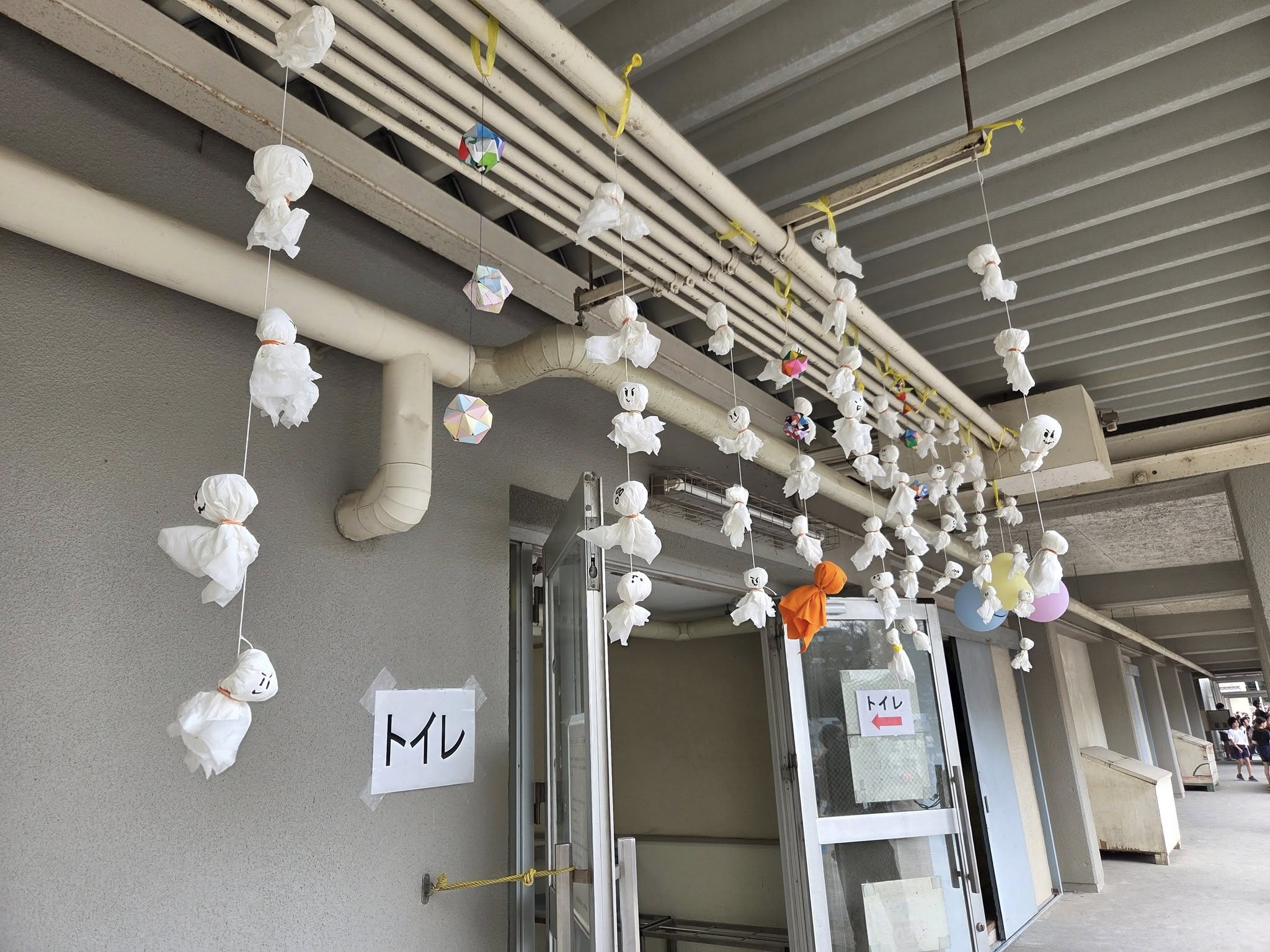 私の地区の小学校では体育館の廊下のところに、児童や先生が作った「なんとか晴れてくれ~!!