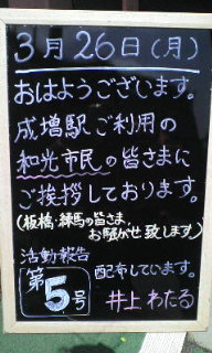 今朝は成増駅でご出勤の方にご挨拶できればと思い、
