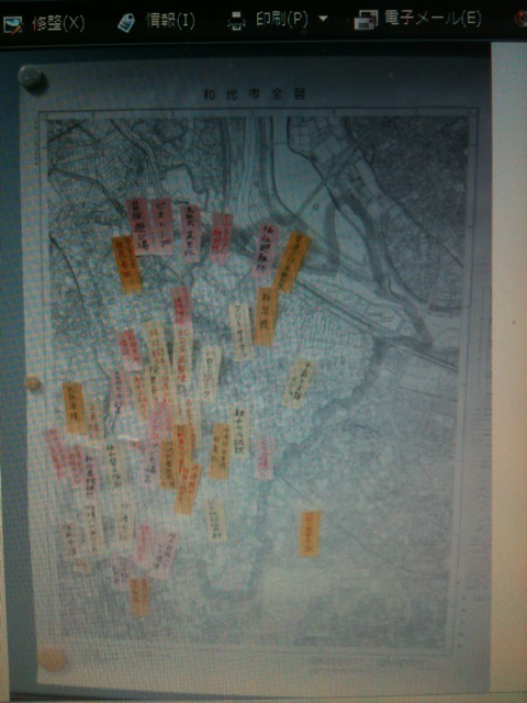 和光市の白地図が、ビッシリとポストイットで埋まりました!