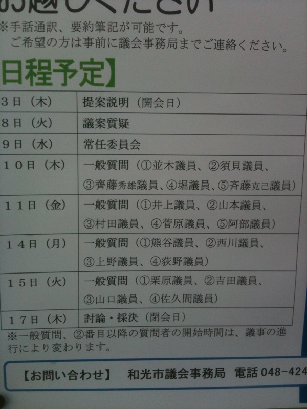 今回の私の一般質問の日程は、タイトルや