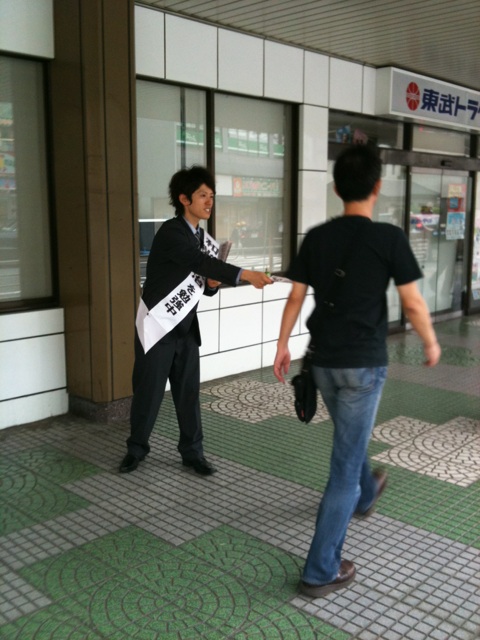 初日は、和光市駅北口の2か所を2人の学生のみで