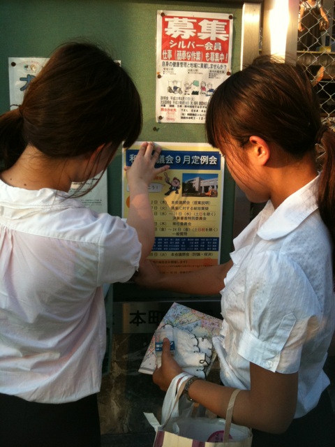 掲示板へのポスター掲示を手伝ってもらいました。