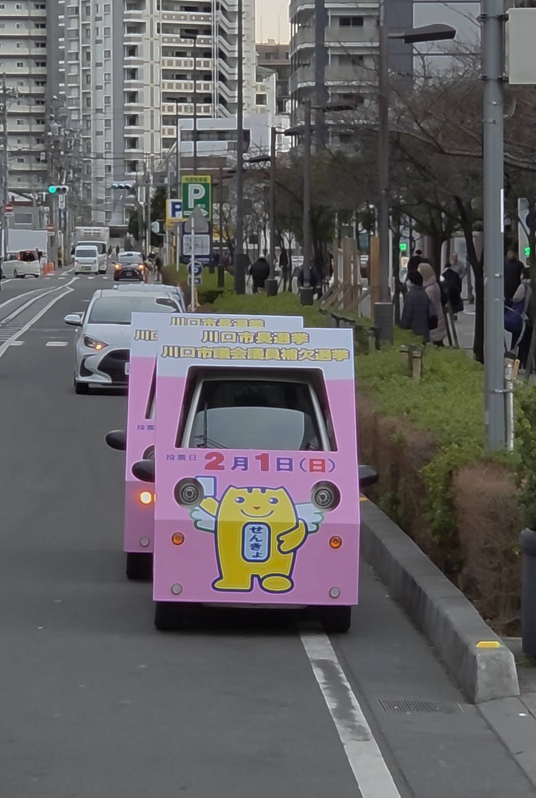 今回は、川口市選挙管理委員会もPRに力を入れていたようで、PR用の小型カーで主要駅前を回るキャンペーンを行なっていたようです。