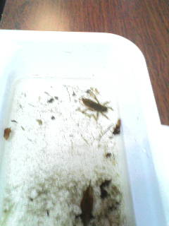 <右>が井上が見つけたヤゴ <左>は松本議員が見つけたメダカ
