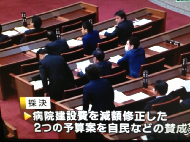 民主、公明、刷新、無所属議員5名が反対でした。)