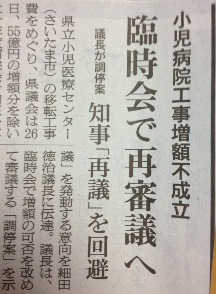 県立小児医療センター建設費の増額予算案(=病院事業会計補正予算)が