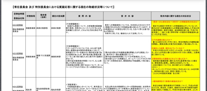 議会事務局の協力も得て、「委員会質問のその後」としてまとめました。