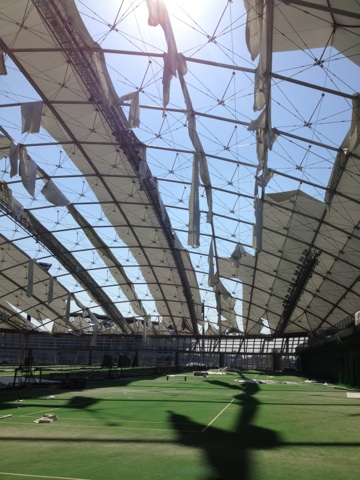 ○膜屋根の撤去後、屋根なしの状態でオープン出来るか?