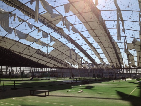 ドームに到着して、職員の方から状況説明と