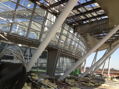 先日の大雪で膜天井が落下する被害のあった熊谷市の
