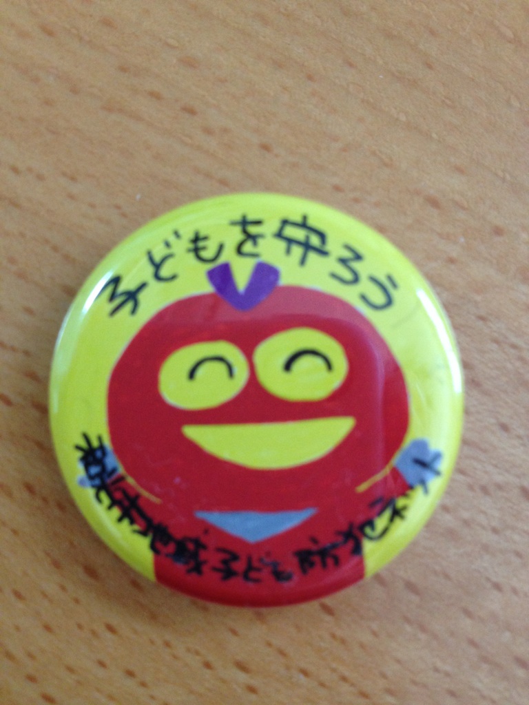 子どもたちを守る防犯ネットのキャラクター「イイヒトナンジャー」のバッジです!