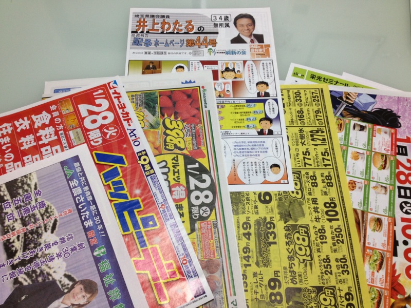 数々のスーパーなどのお買い得情報チラシに混じって