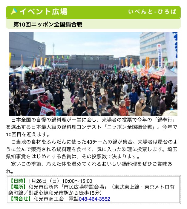 今後、鍋合戦の開催が近づくと、このイベント情報のコーナーで
