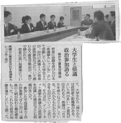 昨日は新たな企画で「学生と県議の意見交換会」でした。