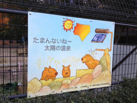 この温泉は、現在、カピパラ舎の屋根に取り付けた太陽光発電と