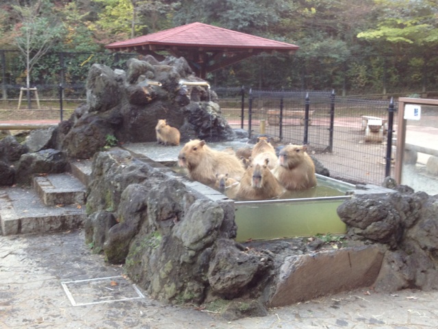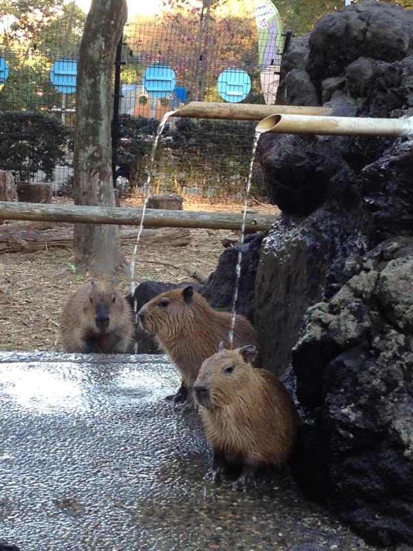 小さなカピバラは、横にある打たせ湯に行くそうです。