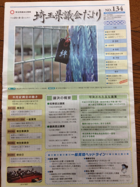 その「埼玉県議会だより」は、最新号が今日(8/3・土曜)、