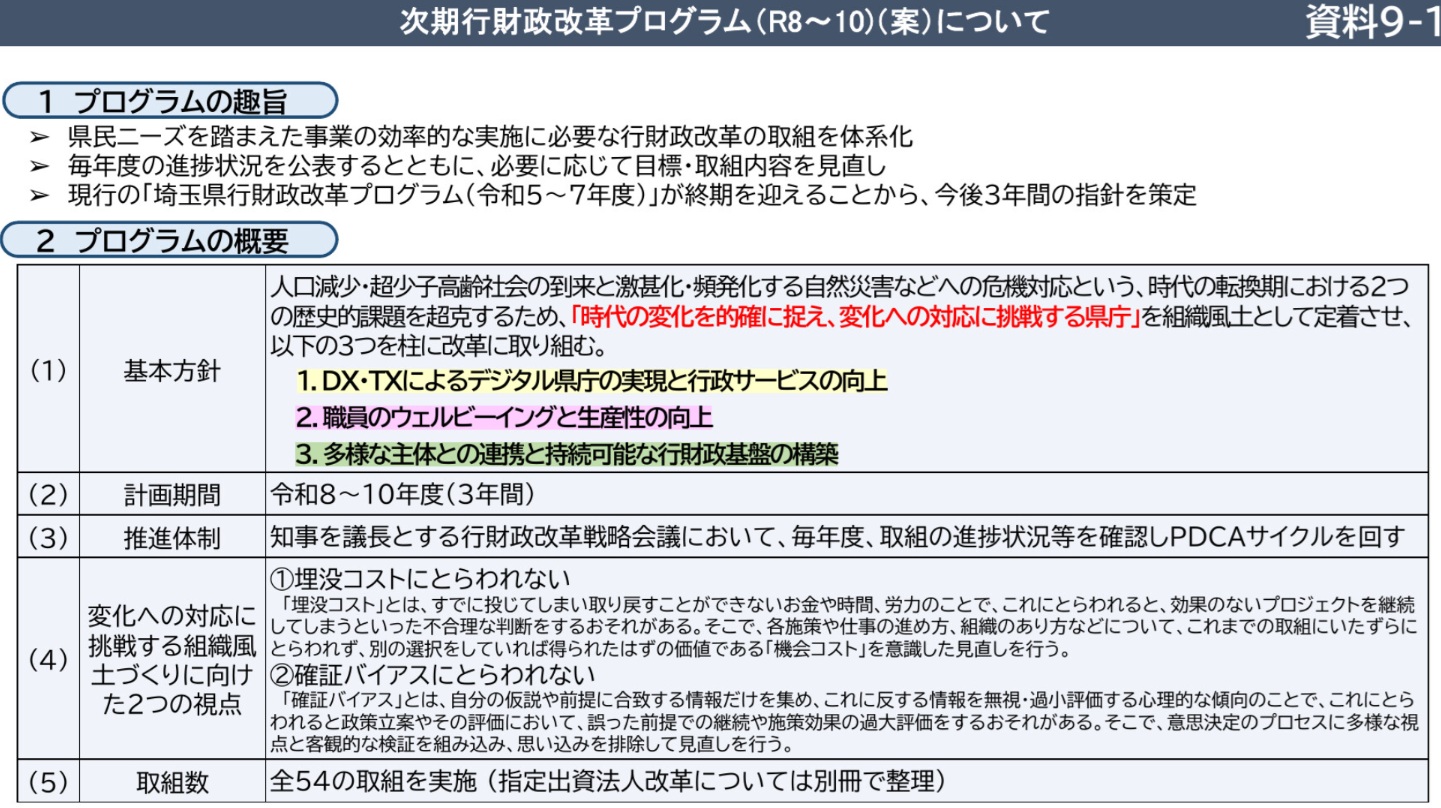 先日、私が所属する「企画財政委員会」で『次期 行財政改革プログラム』について行政報告がありました。