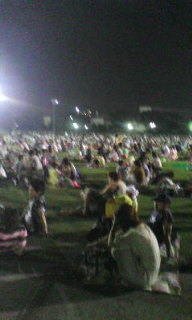 大勢の人が、8時からの花火を待っています。