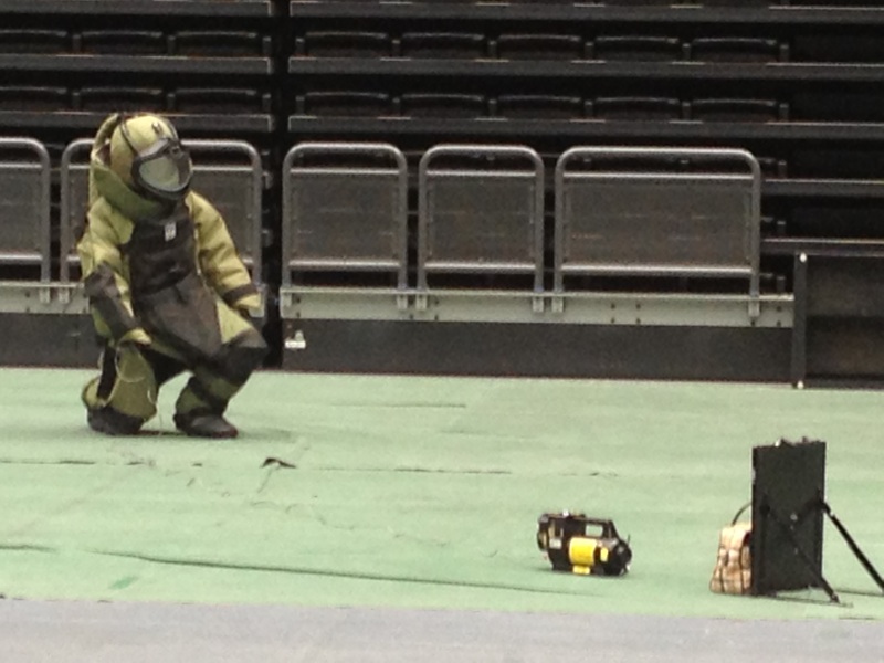 一方、スタジアムの中では爆発物処理が