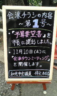 会派チラシ「新しい風」第1号を配らせていただきました。