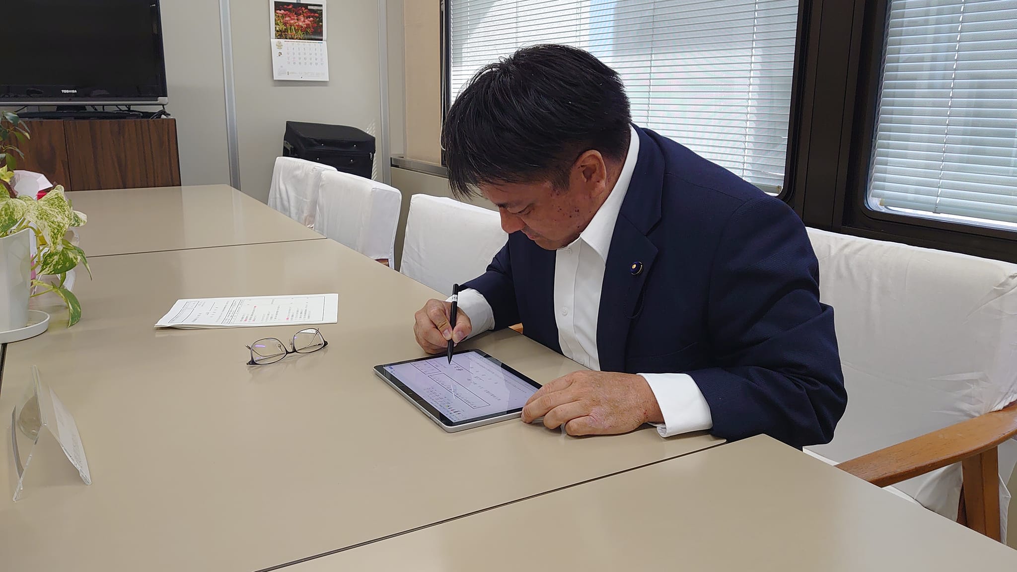 今回から発言通告書の通告の際の署名が、タブレット上の電子署名になっていました。(とはいえ、自宅でサインできるわけではなく、登庁は必要です。)
