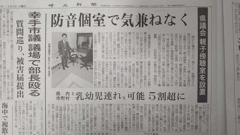 12月定例会から、傍聴席とは別に、親子(特に未就学児など小さなお子さん連れの親子)が傍聴しやすいよう、親子傍聴席を新設しました。