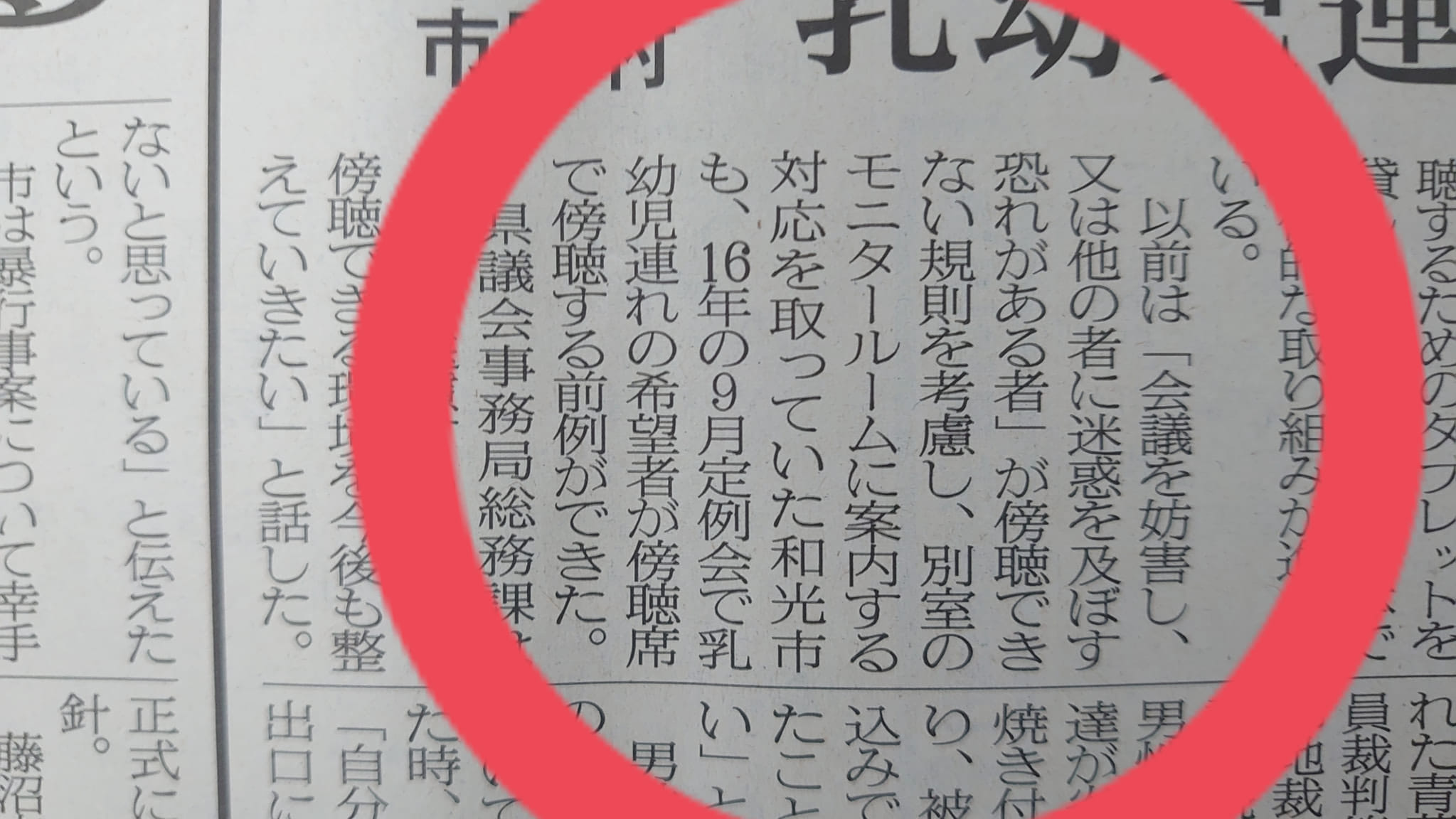 設置を報じる記事には、和光市議会の取組も紹介されています。(〇印のところです。)