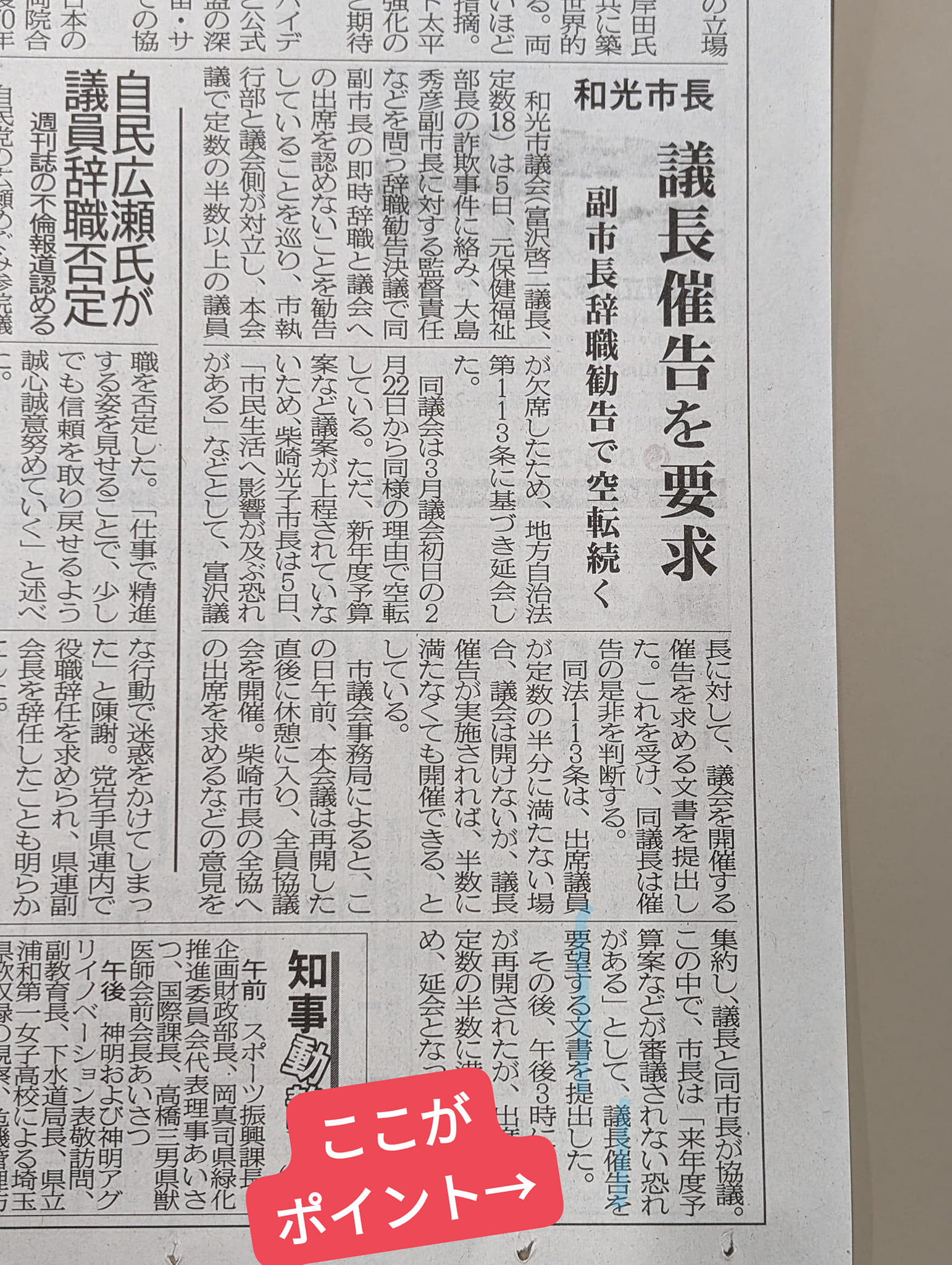 新聞記事にあるように、市長はこれまでも「催告」を議長に要請していました。