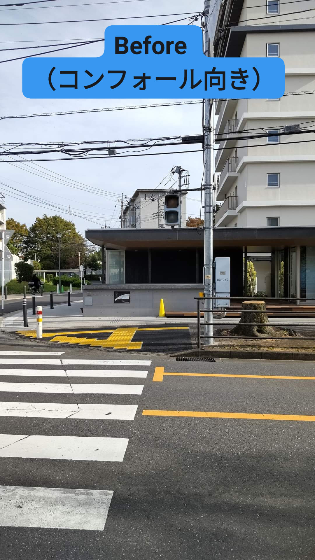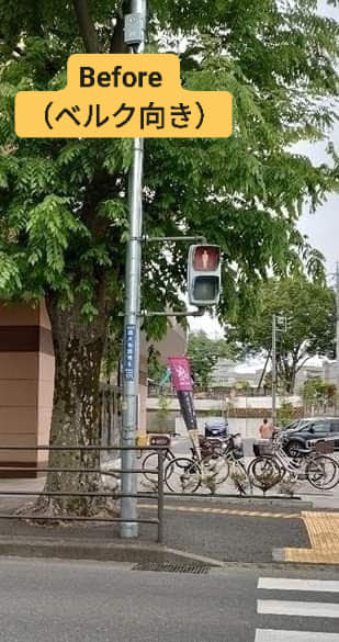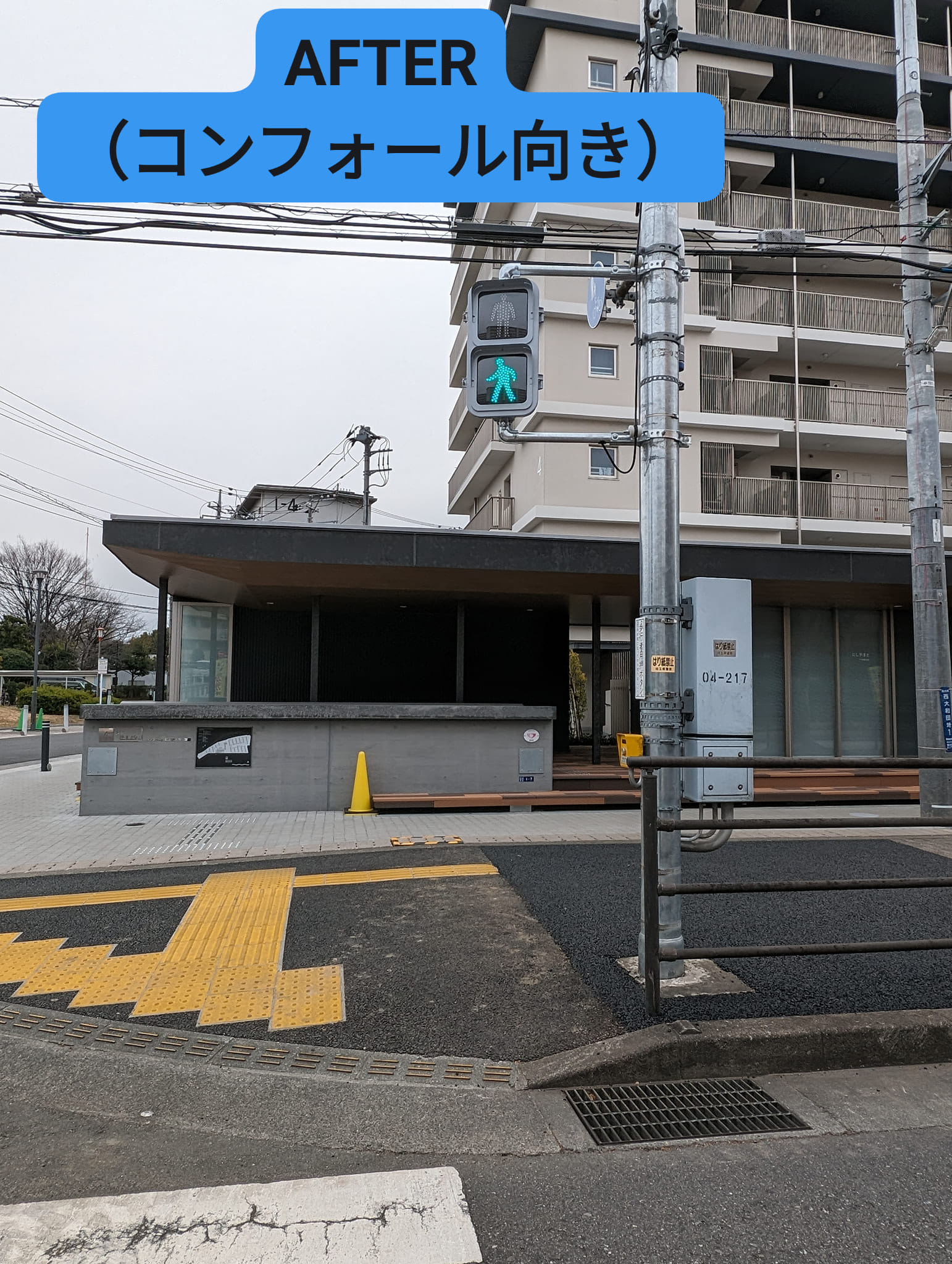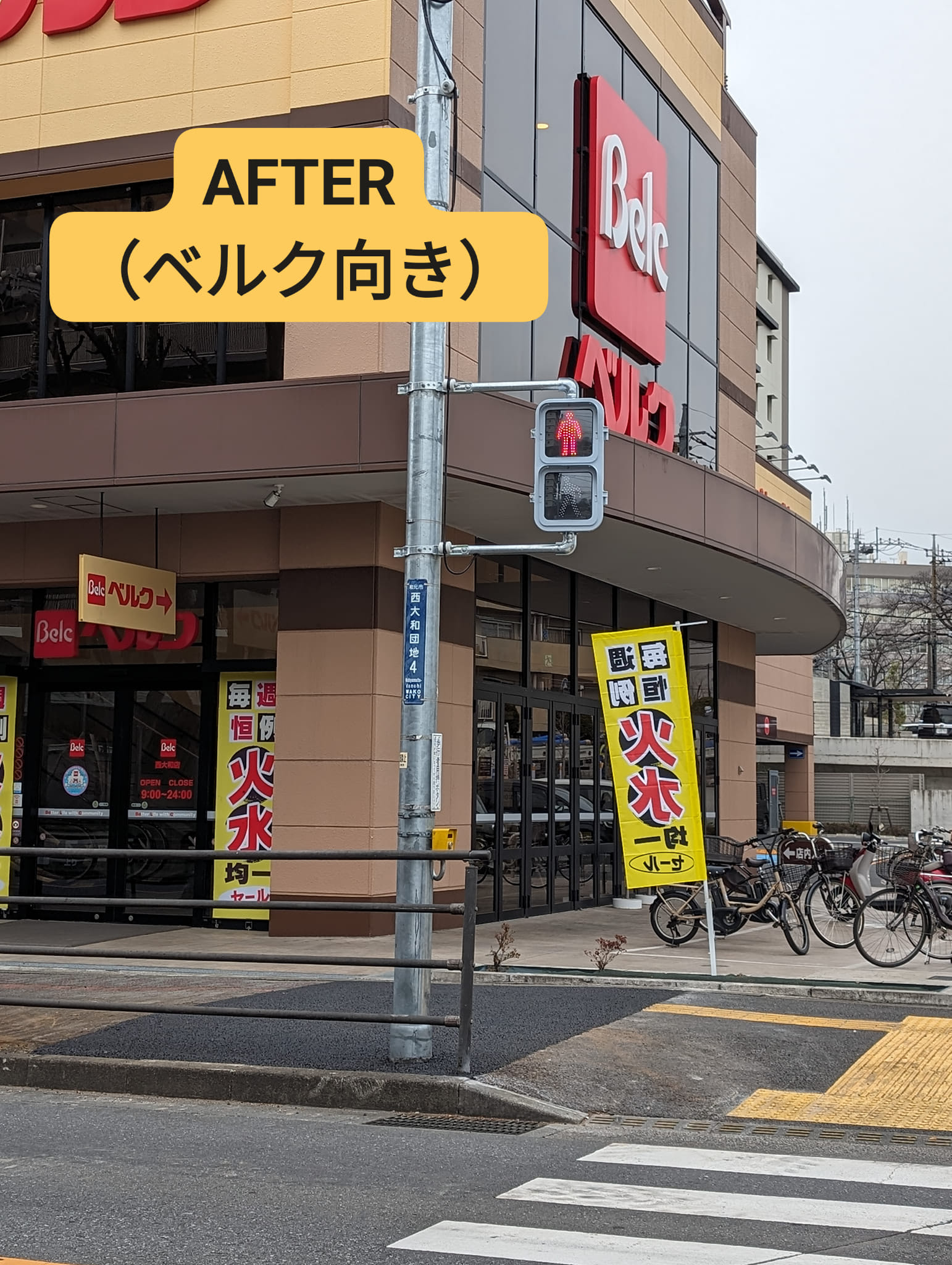 その中でも、「この信号、市内で一番暗くて目にくいんじゃないか?」と感じていたのが、ベルク西大和店の入り口とコンフォール西大和4号棟を結ぶ横断歩道に付いている歩行者用信号です。