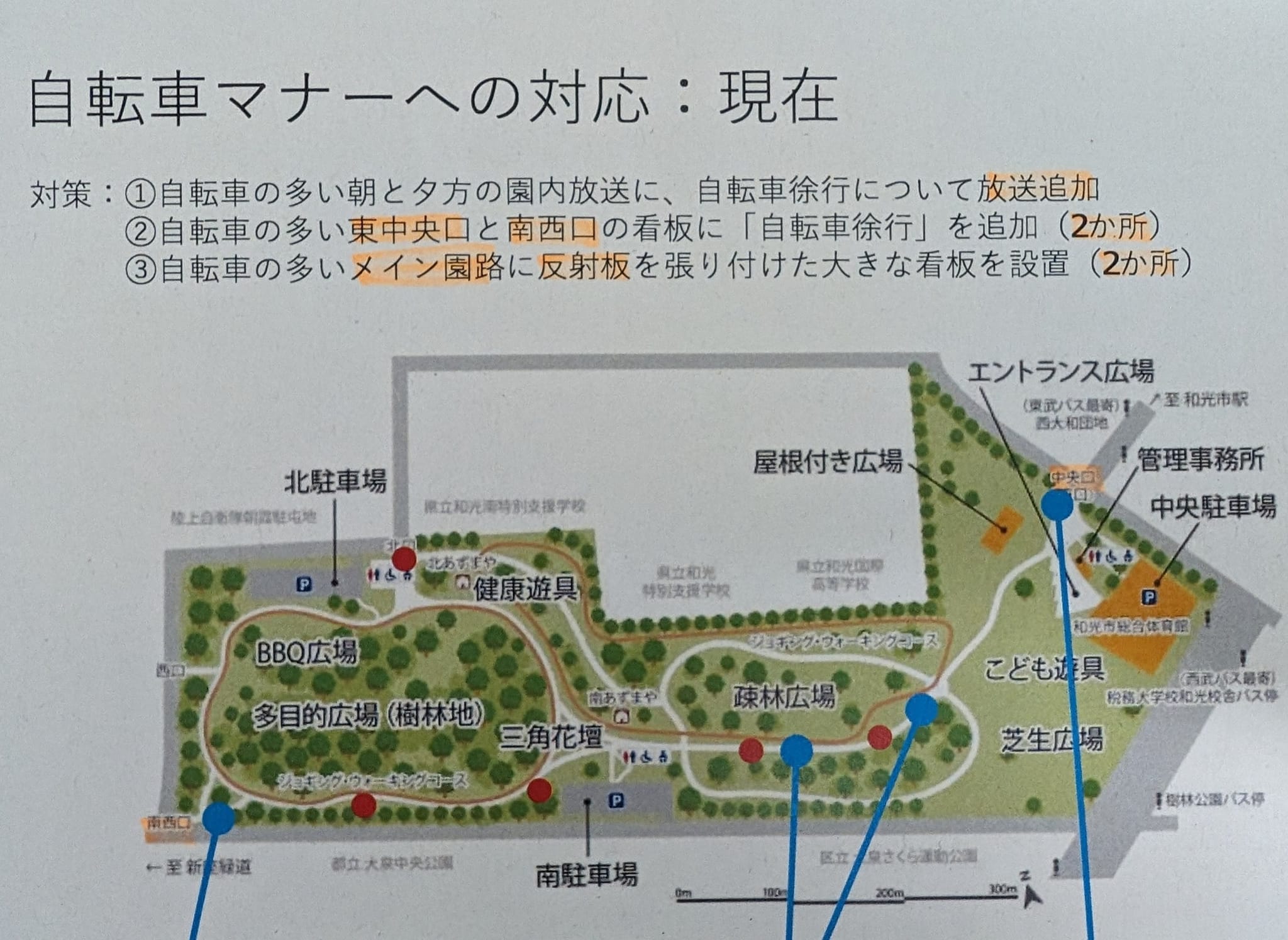 利用者全体にこの周知が浸透していくには、まだ時間が掛かるかもしれませんが公園として、しっかり自転車の安全に対する姿勢を打ち出すことに繋がったと考えています。