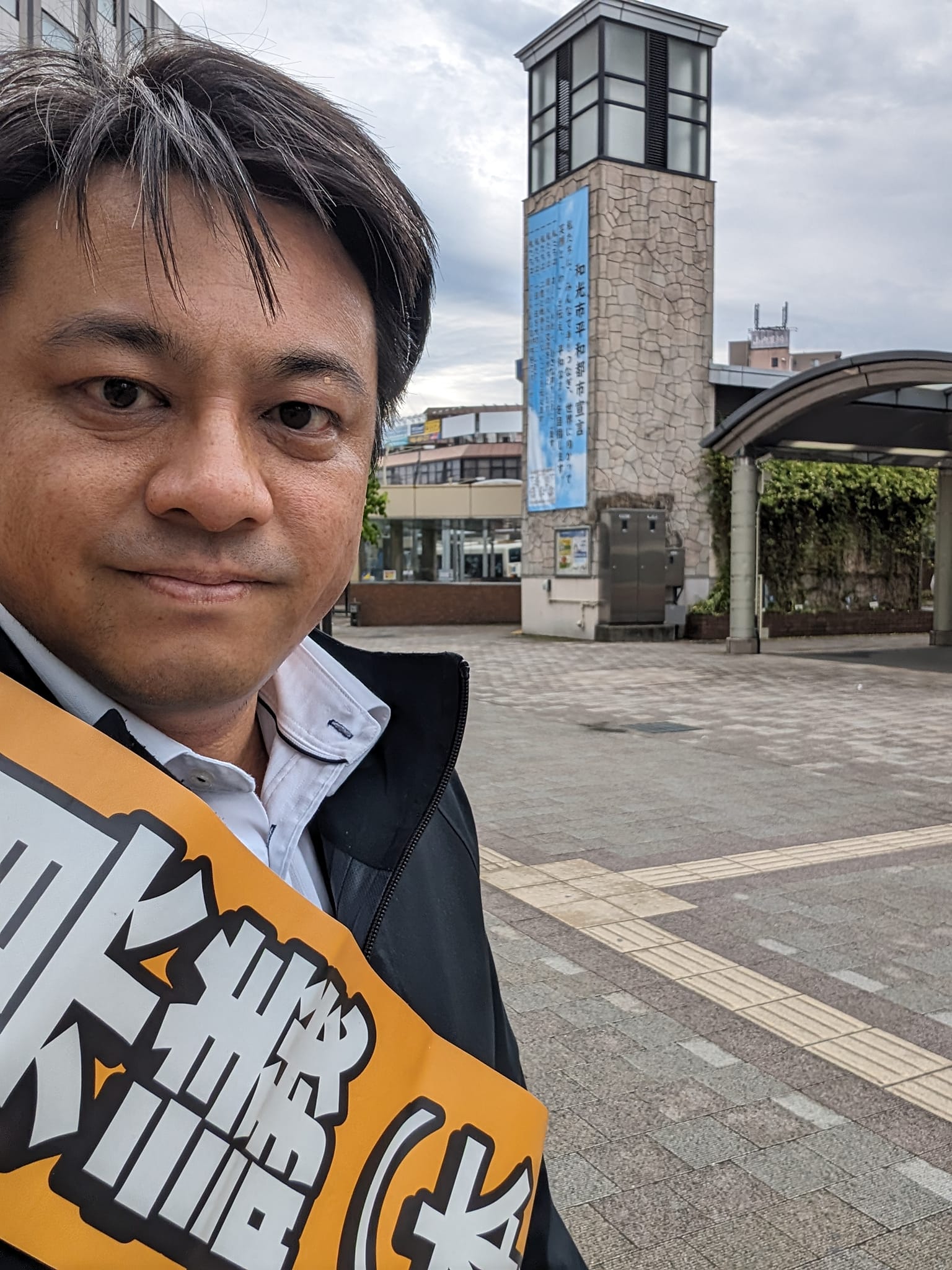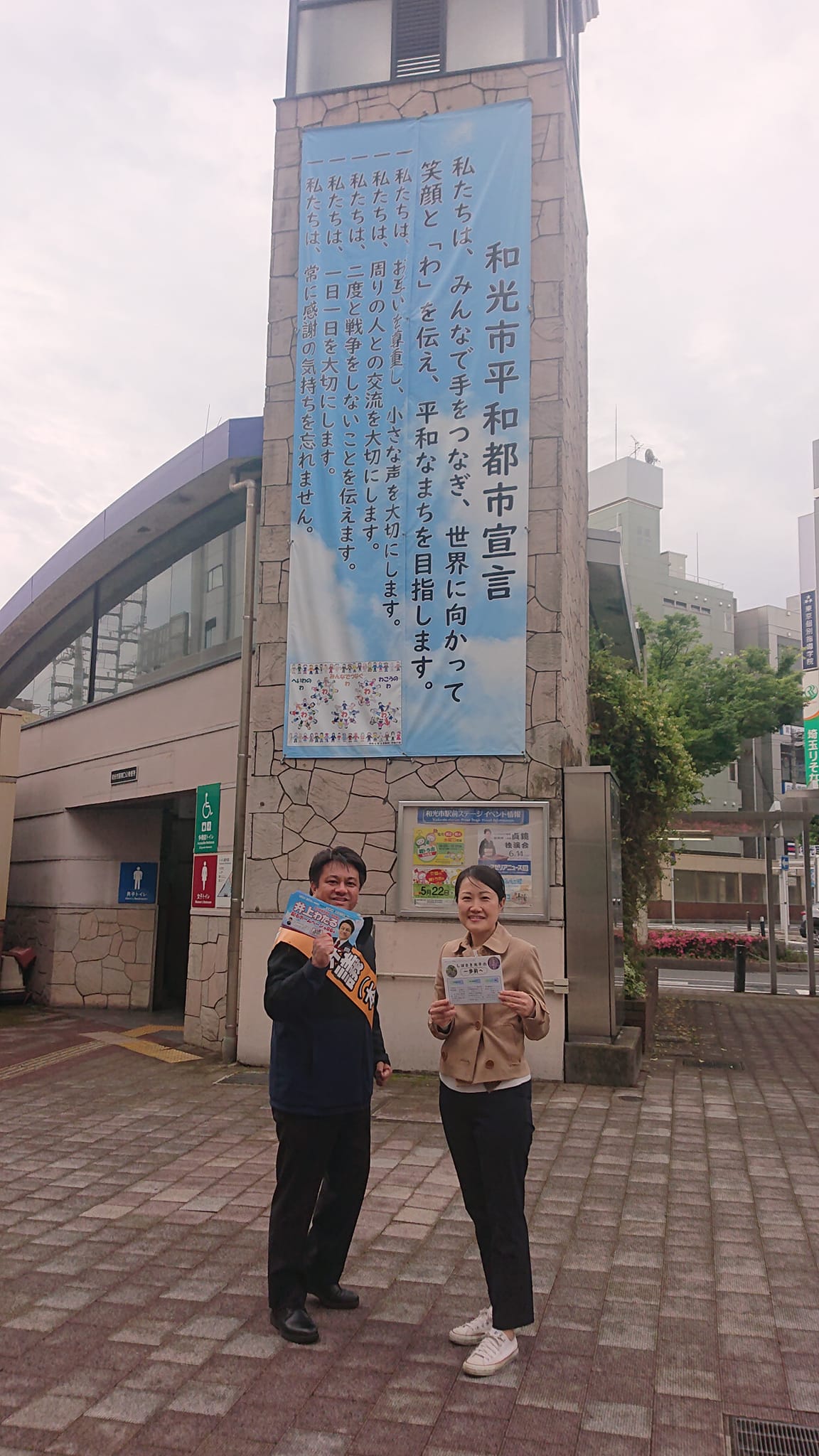 今朝は柴崎光子市長の駅立ちとも時間を合わせることが出来ましたので、少しの時間、一緒に同じ南口で駅立ちをしました。