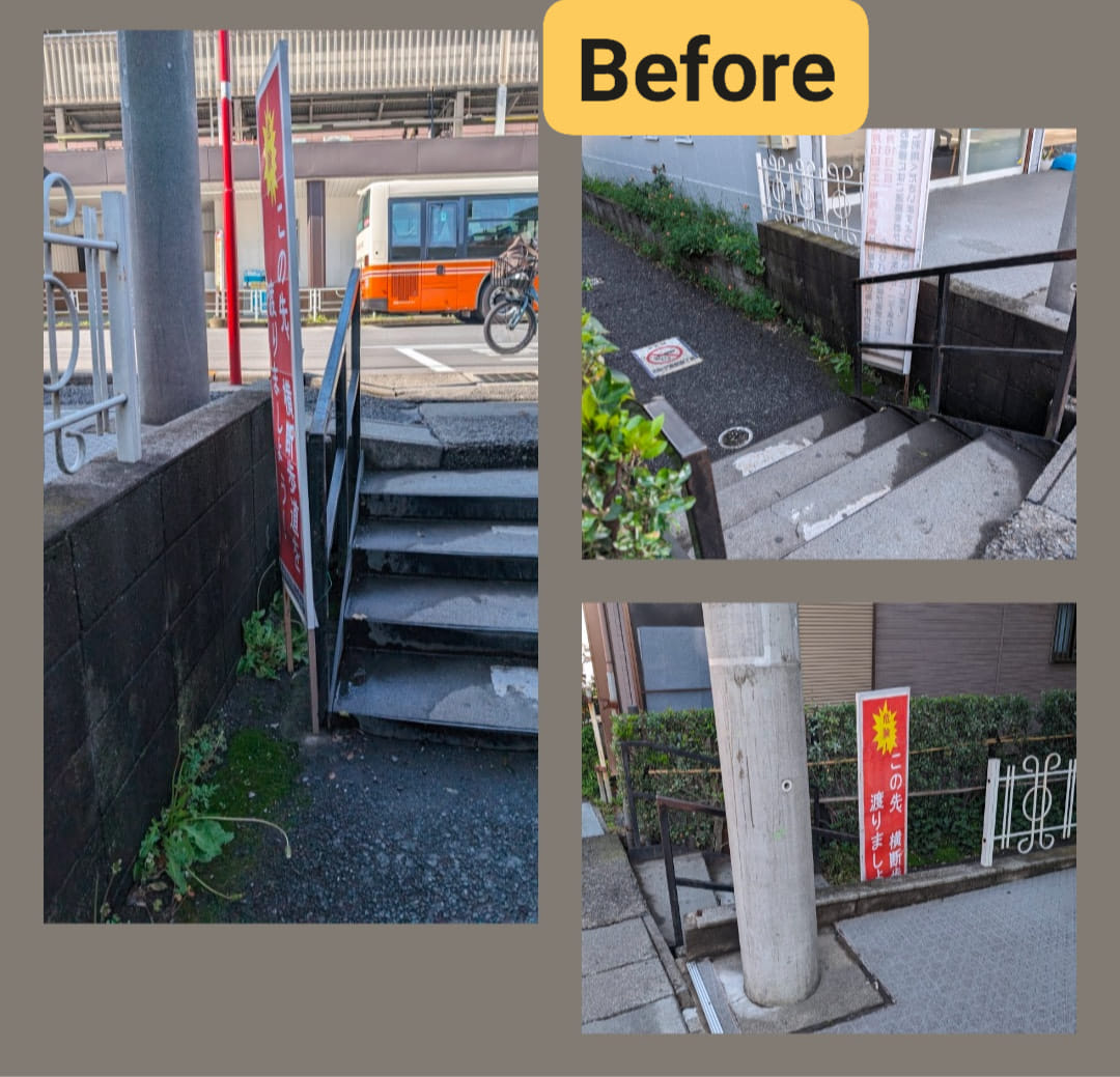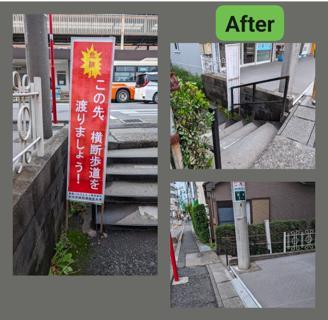 ちょうど、この写真を撮っている時に、「私も同じように危ないなと思ってました。」とお声掛けくださった方もいらしたので、状況を市役所に伝えたところ、早期に対応していただきました。