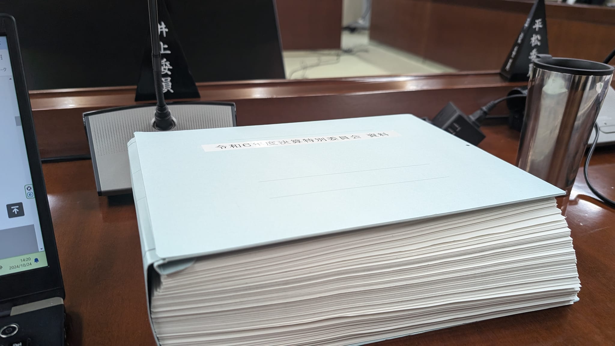 ※ちなみに、写真の書類の山は会派に1冊用意されたモノ。実際の委員会では、ペーパーレス化された資料のほうが扱いやすいので、皆、データで見るようにしています。