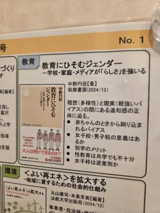 …ただ読んでいくと、例えば「女の子はお人形遊びを選ばされている。ピンクを選ばされている・・・」といった人生全般を通したジェンダーの話で、共学・別学の話はほんの一部でした。