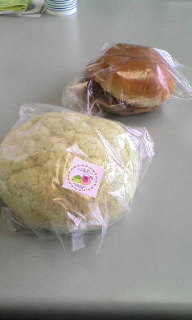 これは、昨日のお昼。ハンバーガーとメロンパンです。