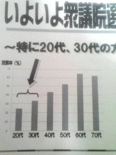 20代、30代の方の投票率が少ないのが分かります。