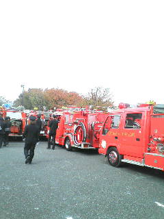 消防車が20台以上並びます。