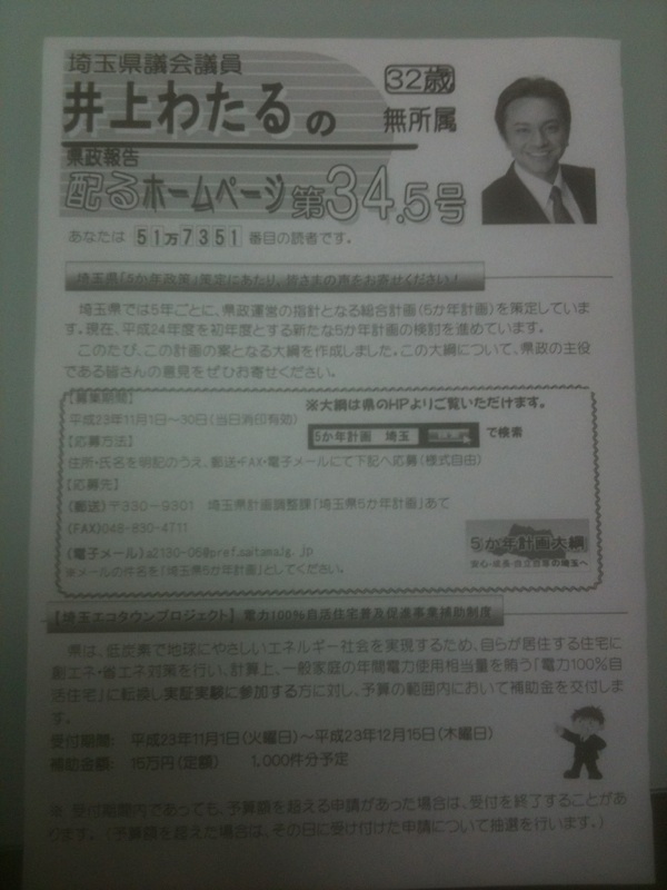 昨日から、「県政報告 配るホームページ 第34号」の