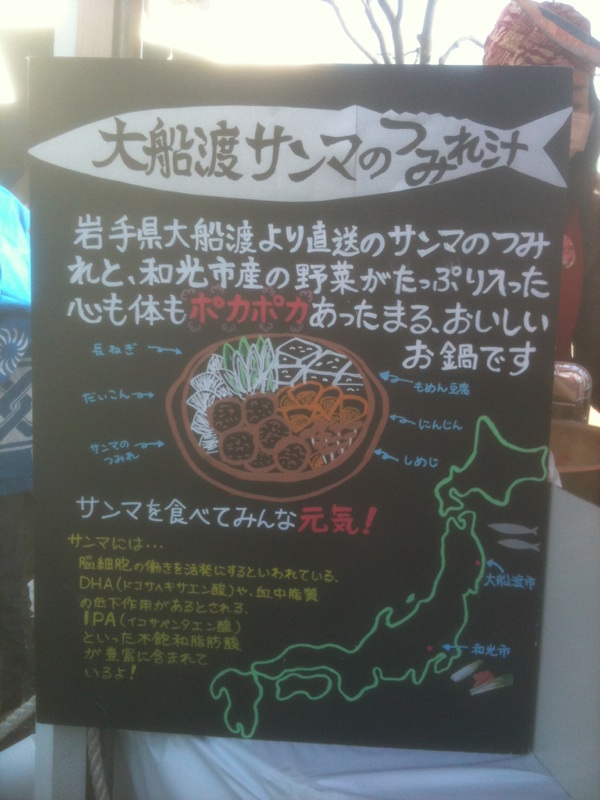 仲間が出店した「大船渡のサンマのツミレ汁」でした。