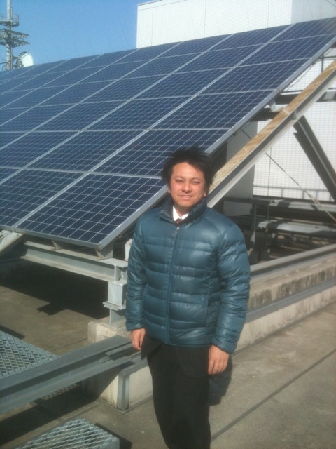 これは屋上に設置された太陽光パネルの前で。