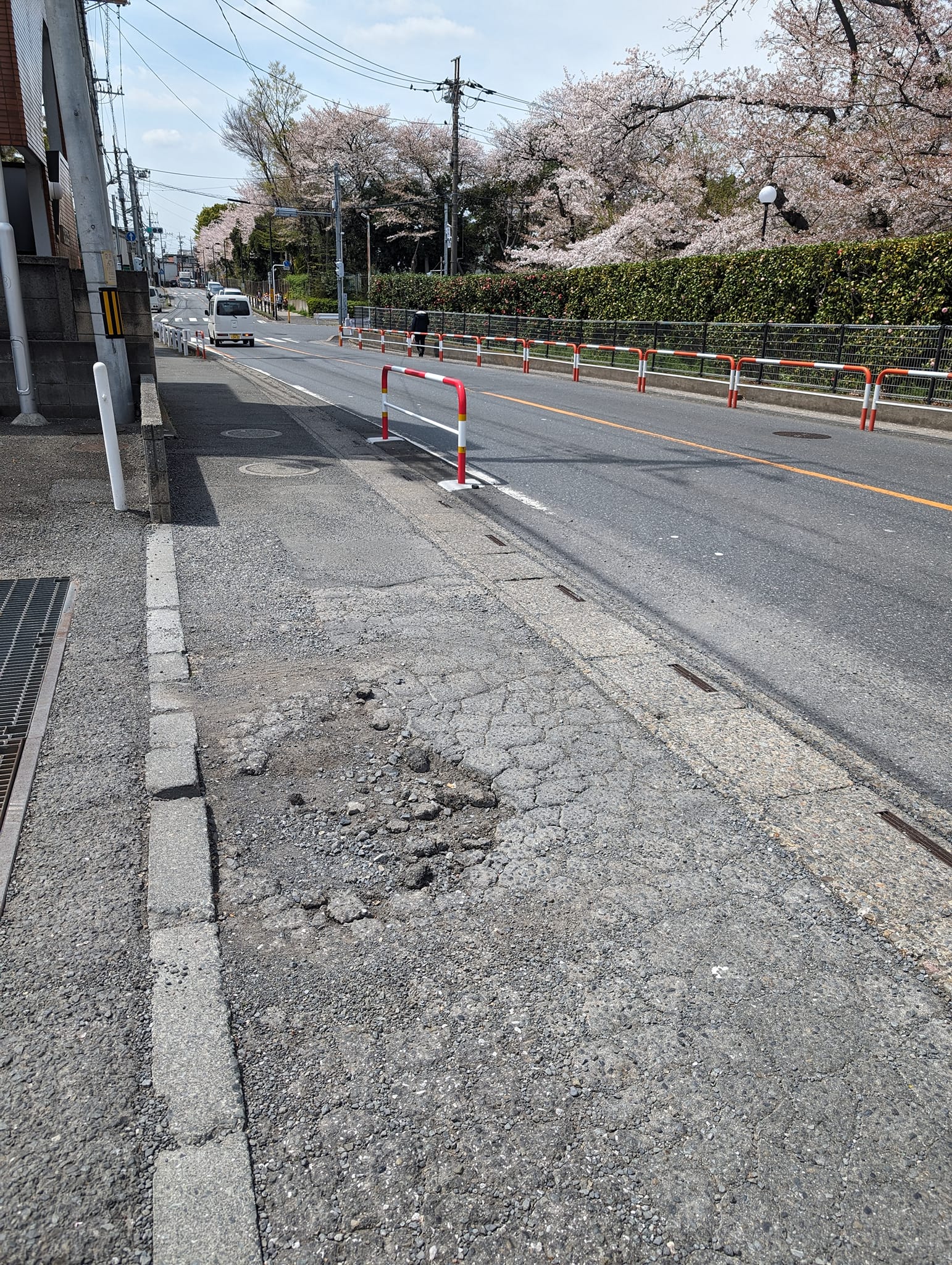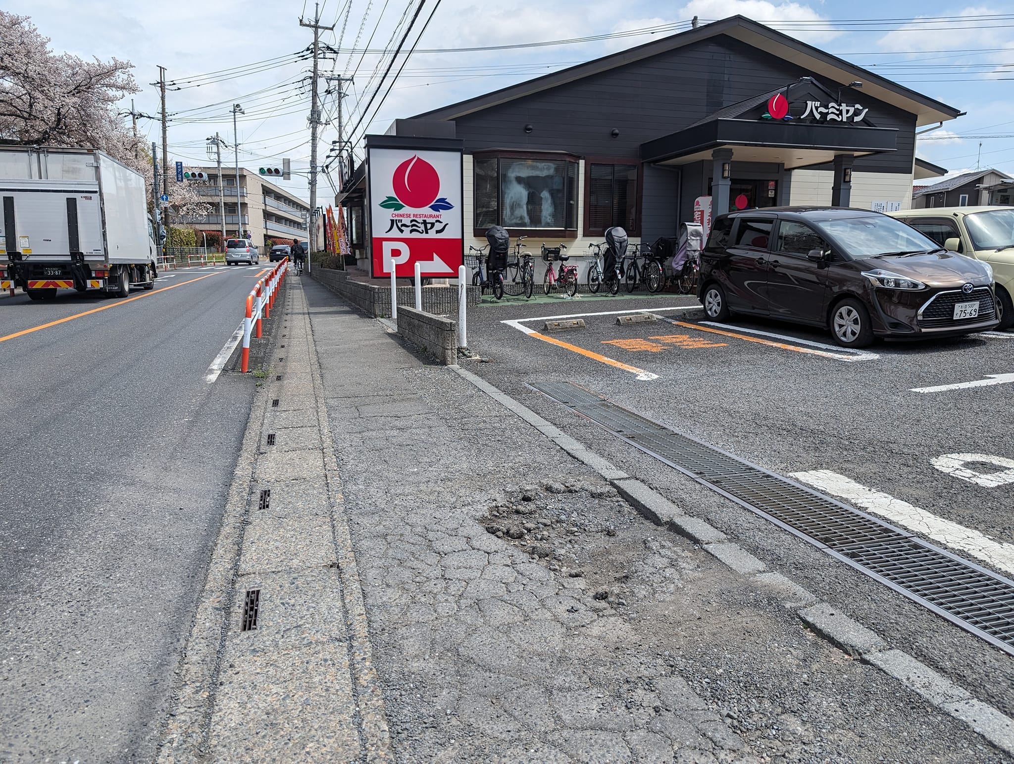 先日お伝えしたバーミアン和光南店の駐車場前のデコボコですが、本日現場を通ったら、陥没部分が埋められていて、応急処置がされていました。