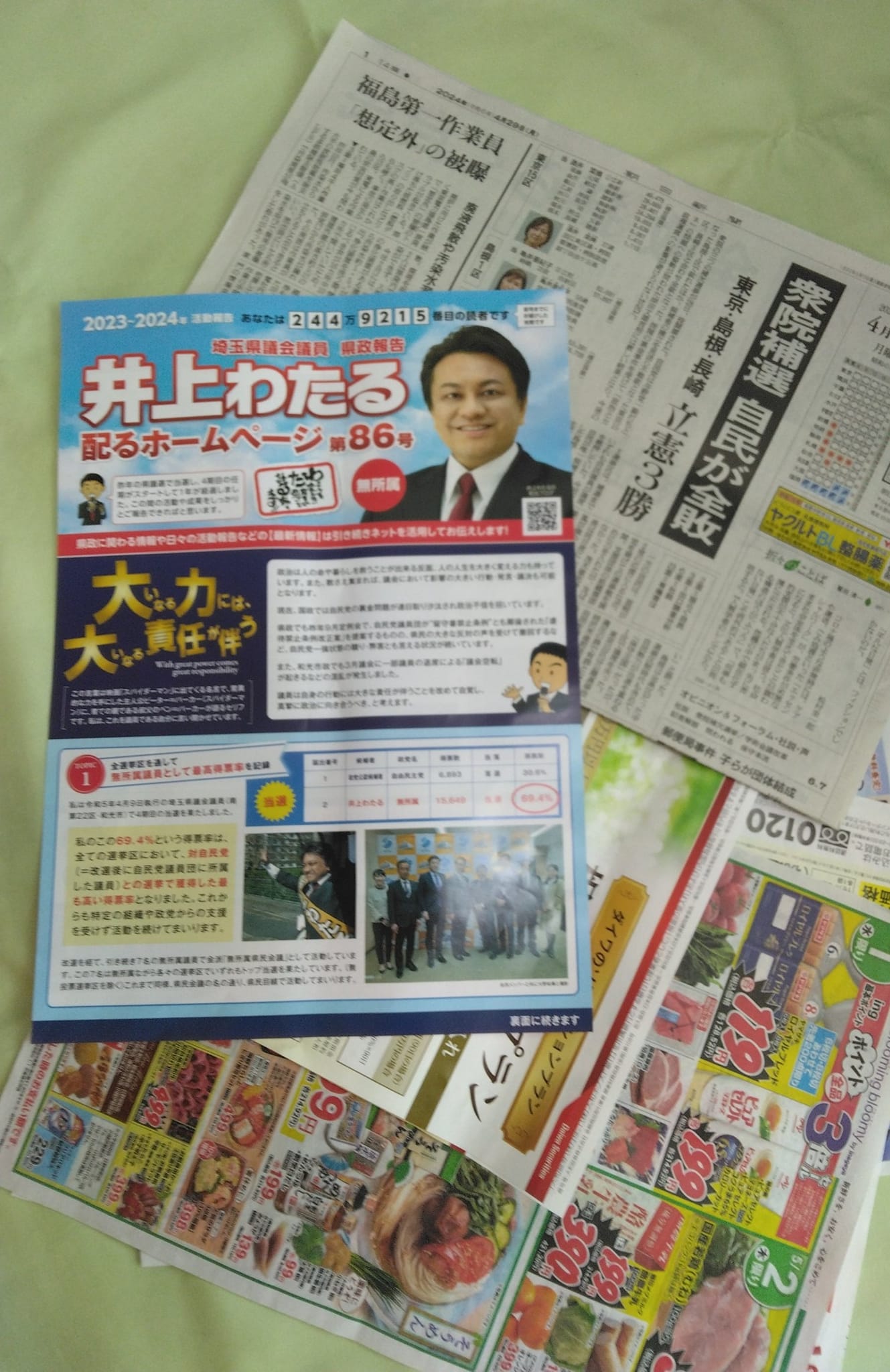 本日、新聞各紙に『配るホームページ第86号』を折り込みました。