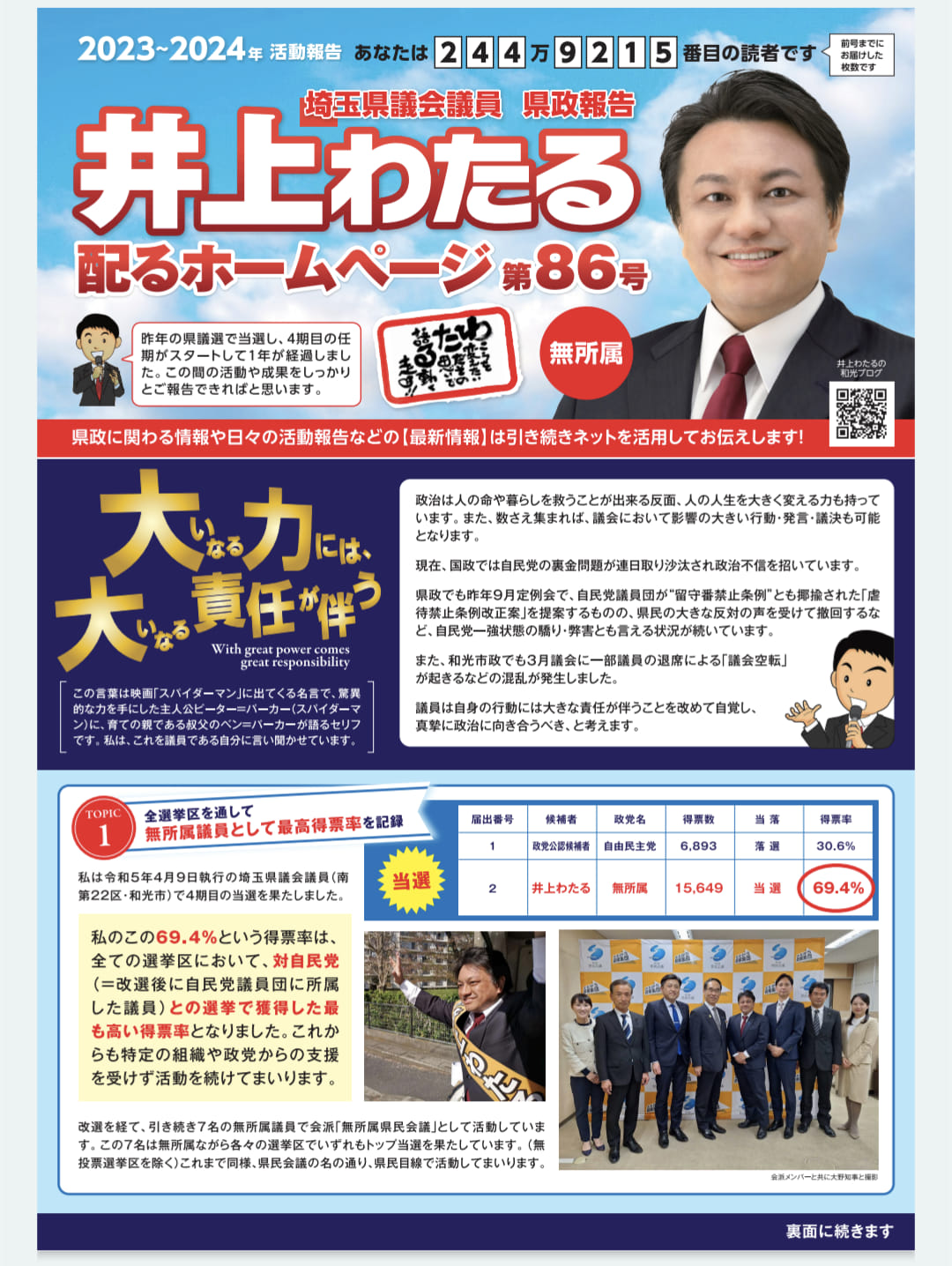 今回から『2023年~2024年活動報告』と銘打って、選挙から直近までの活動報告を様々な角度から行っていきたいと思います。