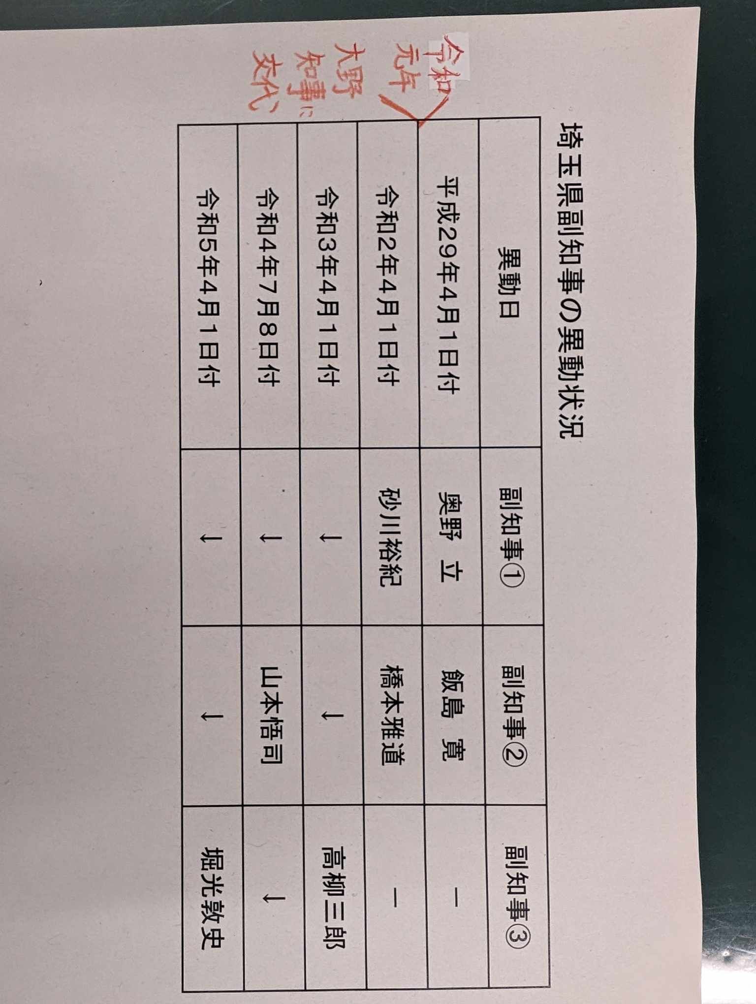 上田清司知事から、大野元裕知事に交代したのが令和元年8月です。